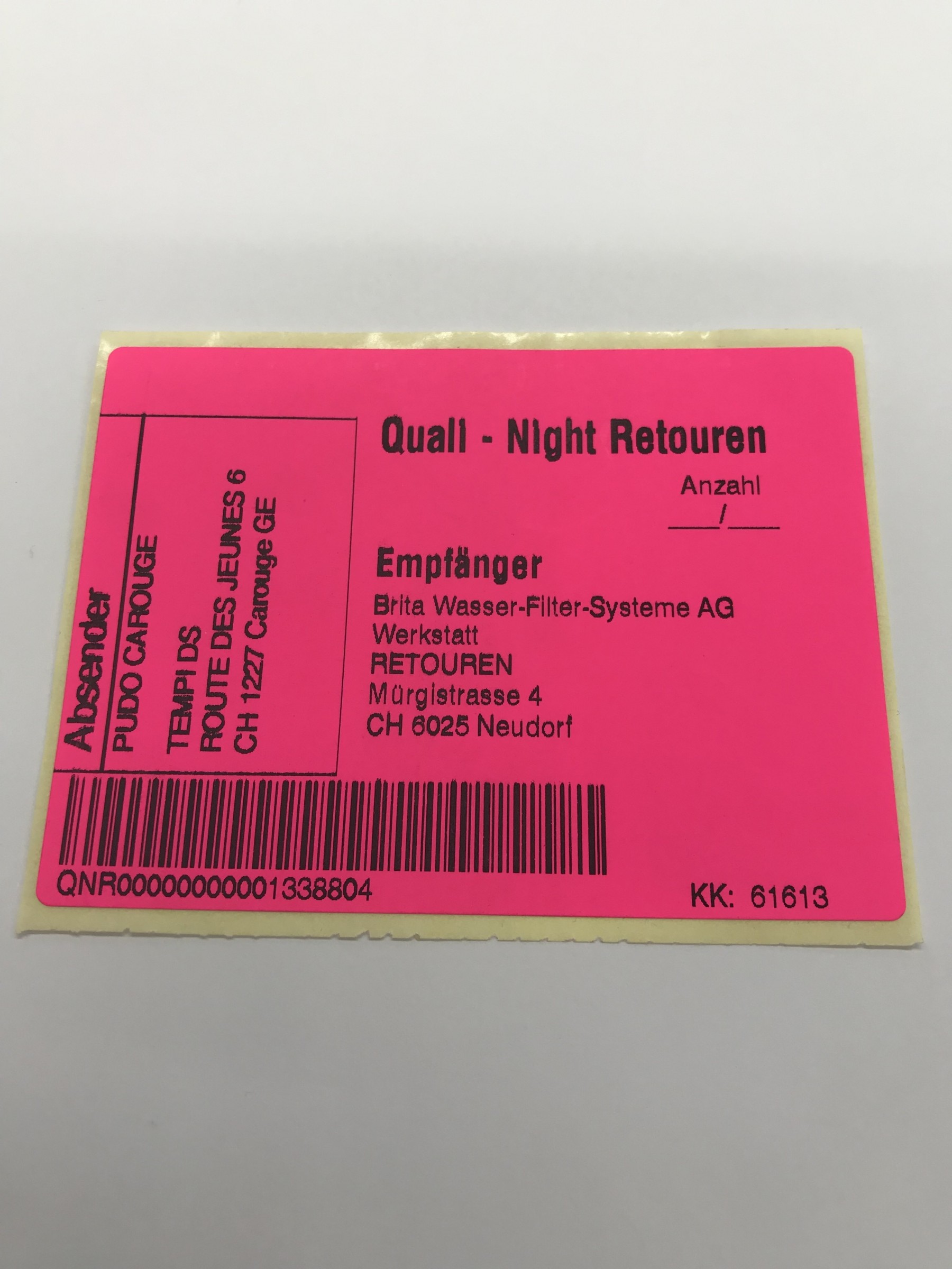 Gebrauchte Retourenetikette Qualinight